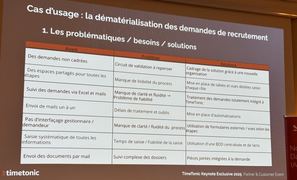 Cet article est le premier d’une série de deux articles. Je consacrerai le premier aux cas clients présenté par Timetonic. Le deuxième sera consacré à la roadmap 2026 qui intéressera plus les développeurs.